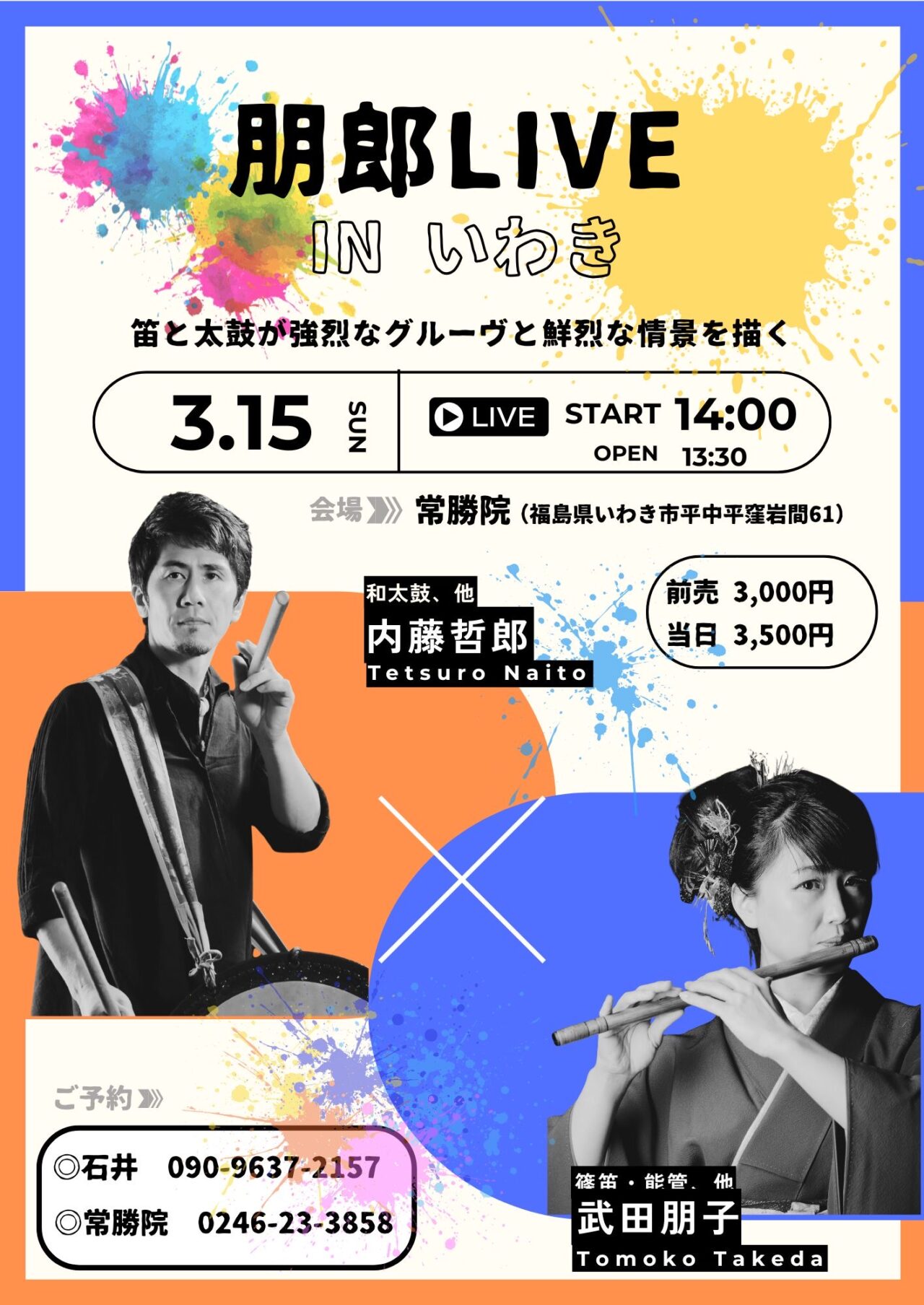 朋郎[武田朋子(篠笛)/内藤哲郎(和太鼓)]